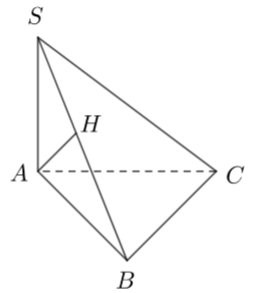 Trong \(\left( {SAB} \right)\) dựng \(AH \bot SB \Rightarrow d\left( {A,\left( {SBC} \right)} \right) = AH\)
