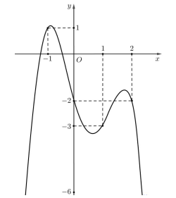 Cho hàm đa thức bậc bốn \(y = f\left( x \right)\) có đồ thị như hình vẽ bên. Số điểm cực