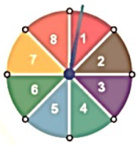 Hình bên mô tả một đĩa tròn bằng bìa cứng được chia làm tám phần bằng nhau và ghi các số