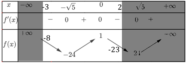 Giá trị nhỏ nhất của hàm số \(f\left( x \right) = {x^4} - 10{x^2} + 1\) trên đoạn \(\left[ { - 3;2} \right]\) bằng: