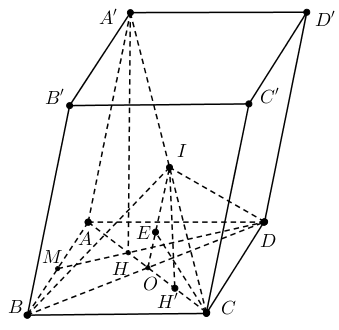 Trong \(\left( {AA'C} \right)\) kẻ \(OI\parallel AA' \Rightarrow I\) là trung điểm của A’C