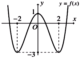Cho hàm số trùng phương \(y = a{x^4} + b{x^2} + c\) có đồ thị như hình vẽ. Hỏi đồ thị hàm số \(y = \dfrac{{\left( {{x^2} - 4} \right)\left( {{x^2} + 2x} \right)}}{{{{[f\left( x \right)]}^2} + 2f\left( x \right) - 3}}\) có tổng cộng bao nhiêu tiệm cận đứng?