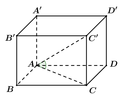 Cho hình hộp chữ nhật \(ABCD.A'B'C'D'\) có \(AB = a\sqrt 2 \), BC = a và \(AA' = a\sqrt 3 \). Góc giữa