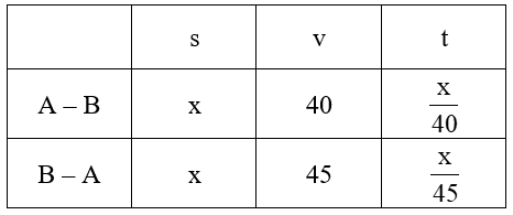 Một xe tải đi từ \({\rm{A}}\) đến \({\rm{B}}\) với vận tốc \(40\;{\rm{km}}/{\rm{h}}\). Khi đến \({\rm{B}}\), xe chờ bốc dỡ hàng hoá 30 phút rồi quay về \({\rm{A}}\) với vận tố \(45\;{\rm{km}}/{\rm{h}}\). Tính quãng đường \({\rm{AB}}\), biết tổng thời gian đi, thời gian về và thời gian bốc dỡ hàng hoá là 6 giờ 10 phút.