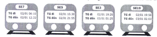 Hình sau thể hiện giờ đi từ Hà Nội (02/01/2024) và giờ đên Vinh của các tàu SE7, SE5, SE3, SE19.