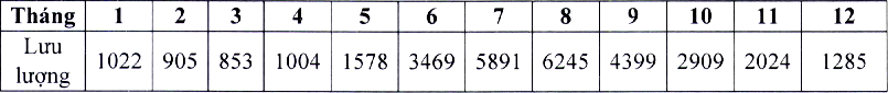 Cho bảng số liệu: Lưu lượng dòng chảy tháng tại trạm Hà Nội trên sông Hồng (Đơn vị: