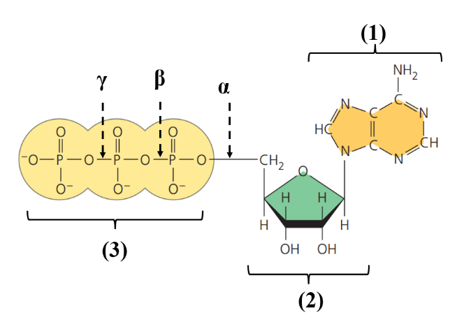 Dựa vào cấu trúc của 1 phân tử ATP.