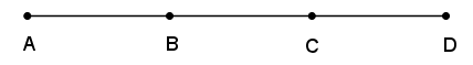Trên một đường thẳng, đặt ba đoạn thẳng liên tiếp \({\rm{AB}} = {\rm{BC}} = {\rm{CD}}\). Tỉ lệ