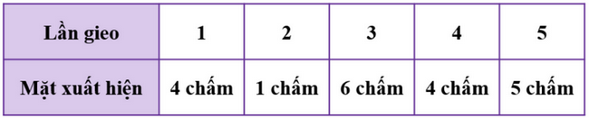 Các bạn Hoa, Chi và Mai cùng gieo một con xúc xắc trong 5 lần và ghi lại kết quả trong bảng dưới đây: