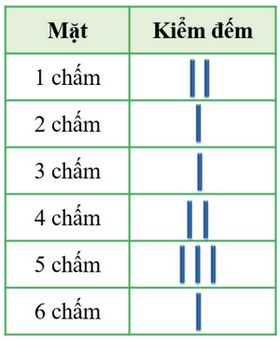 Bạn Mạnh gieo một con xúc xắc 10 lần và dùng vạch kiểm đếm để ghi lại kết quả trong