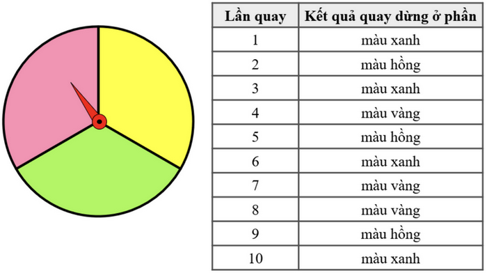 - Quan sát bảng kết quả và số lần kim dừng ở các màu.