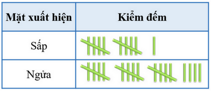 Từ bảng kiểm đếm, cho biết số lần mặt sấp xuất hiện nhiều hơn hay ít hơn mặt ngửa bao nhiêu lần?
