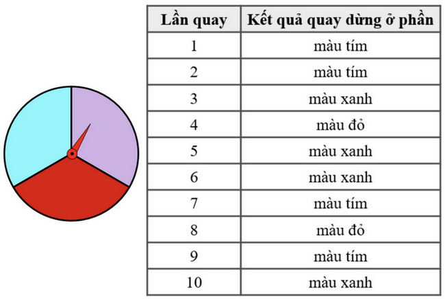 Bạn Thu quay một vòng tròn 10 lần liên tiếp và ghi lại kết quả trong bảng dưới đây.
