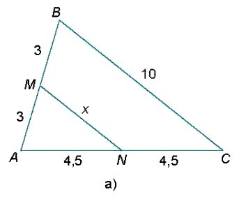 b) Đường thẳng đi qua trung điểm một cạnh của tam giác và song song với cạnh thứ hai thì đi qua trung điểm cạnh thứ ba.