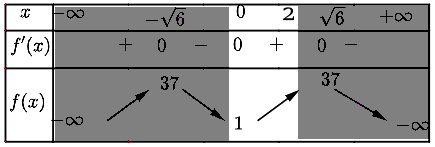 Giá trị nhỏ nhất của hàm số \(f\left( x \right) = - {x^4} + 12{x^2} + 1\) trên đoạn [0;2]