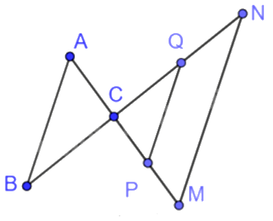 Trong hình sau, cho PQ và MN cùng song song với AB. Hãy liệt kê ba cặp tam giác phân biệt đồng dạng