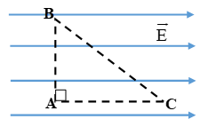 Ba điểm A, B, C là ba đỉnh của một tam giác vuông trong điện trường đều cường độ E = 1000