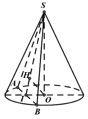 Cho khối nón S, bán kính đáy bằng \(3\sqrt 3 \) và có góc ở đỉnh bằng \({120^0}\). Gọi A và B là