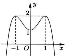 Cho hàm số \(y = a{x^4} + b{x^2} + c\) có đồ thị là đường cong trong hình bên. Trong các số a, b, c có bao nhiêu số dương?