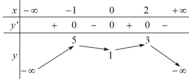 Cho hàm số \(y = f\left( x \right)\) có bảng biến thiên như hinfh vẽ. Đồ thị hàm số \(y = \dfrac{{\left( {f\left( x \right) - 5} \right)\left( {x - 2} \right)}}{{\left( {f\left( x \right) - 3} \right){{\left( {x + 1} \right)}^2}}}\) có tất cả bao nhiêu tiệm cận đứng và tậm cận ngang?