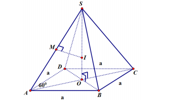 Cho hình chóp tứ giác đều S.ABCD có cạnh đáy bằng a, góc giữa cạch bên và mặt đáy bằng