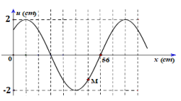 Một sóng hình sin lan truyền trên một sợi dây đàn hồi theo chiều dương của trục Ox. Hình vẽ bên mô tả hình dáng của sợi dây tại thời điểm \({t_1}\). Cho tốc độ truyền sóng trên dây bằng v = 0,64 m/s. Vận tốc của điểm M tại thời điểm \({t_2} = {t_1} + \dfrac{3}{8}\,\,\left( s \right)\) gần giá trị nào nhất sau đây?