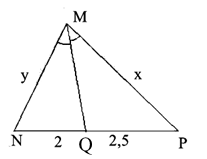Trong hình có MQ là tia phân giác của \(\angle {\rm{NMP }}\). Tỉ số \(\dfrac{x}{y}\)