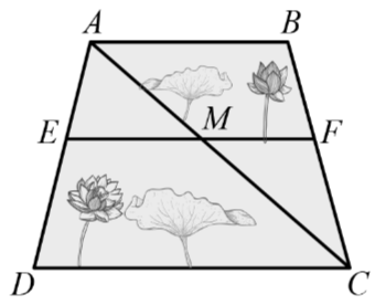 Một ao sen có dạng hình thang \(ABCD(AB//CD)\) với \(AB = 35\;{\rm{m}}\), \(CD = 56\;{\rm{m}}\). Người ta