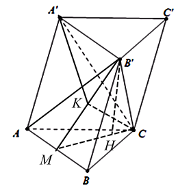 Xác định đường cao B’H của lăng trụ. Đặt B’H = x