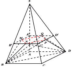 - Xác định thiết diện \({A^\prime }{B^\prime }{C^\prime }{D^\prime }\) của hình chóp cắt bởi mặt phẳng \((MNPQ)\)