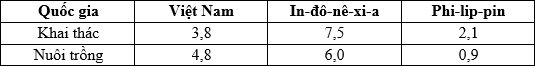 Cho bảng số liệu: SẢN LƯỢNG THỦY SẢN MỘT SỐ NƯỚC ĐÔNG NAM Á, NĂM 2019 (Đơn vị: triệu