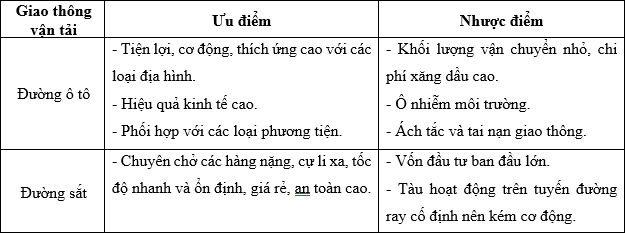 So sánh ưu điểm và nhược điểm của giao thông vận tải đường ô tô và đường sắt.