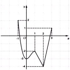 Cho hàm số \(y = f\left( x \right)\) liên tục trên đoạn \(\left[ { - 1;3} \right]\) và có đồ thị như hình vẽ bên. Gọi \(M,m\) lần lượt là giá trị lớn nhất và giá trị nhỏ nhất của hàm số đã cho trên đoạn \(\left[ { - 1;3} \right]\). Giá trị của \(M + m\) là