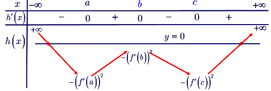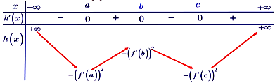 \(h\left( x \right) = 2f\left( x \right).f''\left( x \right) - {\left( {f'\left( x \right)} \right)^2}\). Tính h’(x) và lập BBT