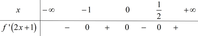 Cho hàm số \(y = f\left( x \right)\) liên tục trên \(\mathbb{R}\) và hàm số \(y = f'\left( {2x + 1} \right)\) có bảng xét dấu như sau: