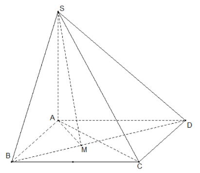 Cho hình chóp \(SABCD\)có \(ABCD\)là hình chữ nhật, \(AB = a,AD = a\sqrt 3 \), \(SA\) vuông góc với đáy