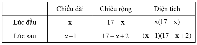 Một mảnh vườn có dạng hình chữ nhật với chu vi là \(34\;{\rm{m}}\). Nếu tăng chiều rộng thêm