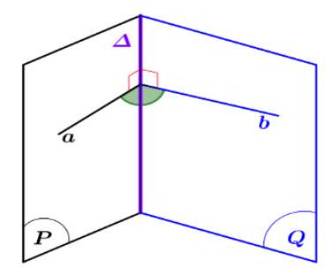 Ta xác định góc nhị diện tạo bởi hai mặt phẳng \(\left( P \right)\) và \(\left( Q \right)\) theo 3 bước: