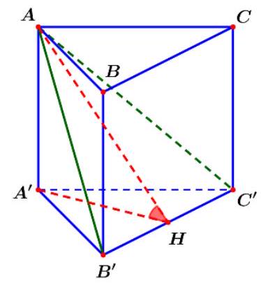 Cho hình lăng trụ đứng \(ABC \cdot A'B'C'\) có tất cả các cạnh bằng nhau. Gọi \(\varphi \) số đo của góc phẳng nhị diện \(\left[ {A',B'C',A} \right]\). Tính \(\varphi \) ?