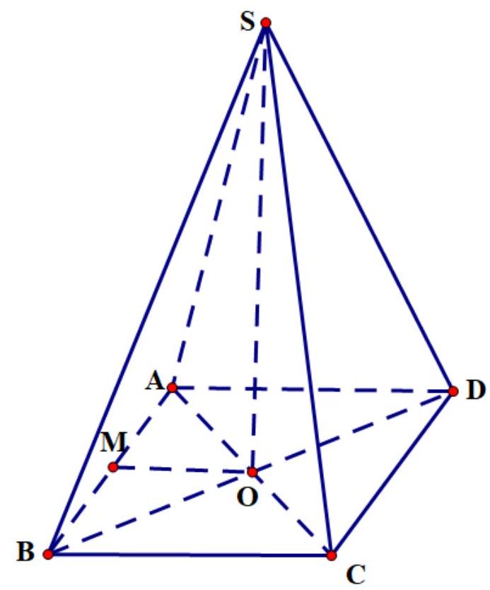 c) Gọi \(M\) là trung điểm của cạnh \(AB\). Tính số đo của góc nhị diện \(\left[ {M,SO,D} \right]\).