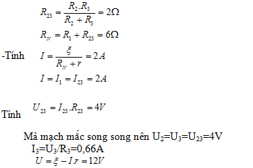 , điện trở của dây nối không đáng kể, điện trở của vôn kế vô cùng lớn.Tính số chỉ của ampe kế và vôn kế.