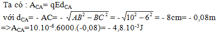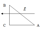 Cho cường độ điện trường đều E = 6000 V/m, bao quanh tam giác ABC vuông tại C, AB=10cm, BC = 6cm. Vectơ cường độ điện trường song song với AC và có hướng từ A đến C.