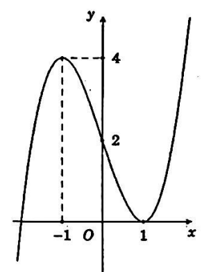 Cho hàm số \(y = f\left( x \right)\) có đạo hàm liên tục trên \(\mathbb{R}\). Đồ thị của hàm số \(y = f'\left( x \right)\) như hình vẽ. Số điểm cực trị của hàm số \(y = f\left( x \right) - 4x\) là: