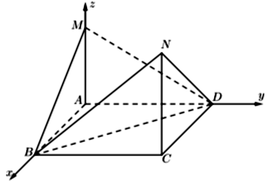 Trong mặt phẳng (P) cho hình chữ nhật ABCD có AB = a, AD = b. Trên các nửa đường thẳng Ax, Cy vuông góc với (P) và ở cùng một phía với mặt phẳng ấy, lần lượt các điểm M, N sao cho (MBD) vuông góc với (NBD). Tìm giá trị nhỏ nhất \({V_{\min }}\) của tứ diện MNBD.