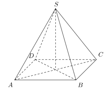 Cho hình chóp đều \(S.ABCD\) có đáy là hình vuông cạnh \(a\), cạnh bên \(SA = 2a\). Thể tích của