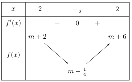 Cho hàm số \(y = {\left( {{x^2} + x + m} \right)^2}\). Tổng tất cả các giá trị thực tham số \(m\) sao cho \(\mathop {\min }\limits_{\left[ { - 2;2} \right]} y = 4\) bằng