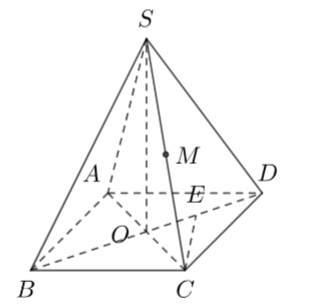 Cho hình chóp \(S.ABCD\) có đáy là hình chữ nhật với \(AC = 2a,\,\,BC = a,\,\,SA = SB = SC\). Gọi \(M\)