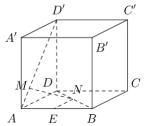 Cho hình hộp \(ABCD.A'B'C'D'\) có tất cả các mặt là hình vuông cạnh \(a\). Các điểm \(M,\,\,N\) lần lượt trên \(AD',\,\,BD\) sao cho \(AM = DN = x\,\,\left( {0 < x < a\sqrt 2 } \right)\)