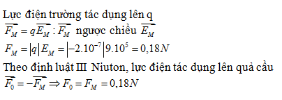 Một quả cầu nhỏ mang điện tích Q =10-6C đặt trong không khí. Đặt điện tích q =2.10-7C tại M, xác định lực điện trường do quả cầu mang điện tích Q tác dụng lên q. Suy ra lực điện trường tác dụng lên quả cầu mang điện tích Q, biết EM=9.105V/m.