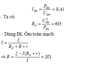 Một nguồn điện có suất điện động 12V và điện trở trong 4Ω, dùng để thắp sang một bóng đèn loại 6V - 6W. Hỏi phải mắc bóng đèn nối tiếp với điện trở R bằng bao nhiêu để đèn sáng bình thường.